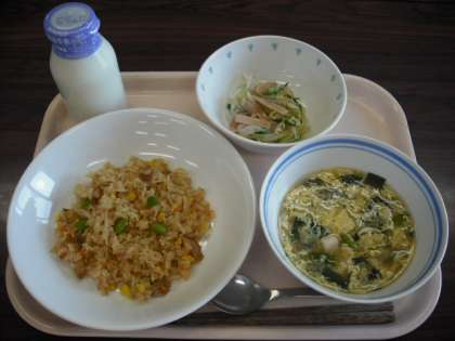6月30日の給食 公開日 2014/07/01 更新日 2014/07/01 八雲ランチ 今日の給食:枝豆チャーハン ニラ玉スープ 中華風スープ 牛乳 産地 にんじん:千葉県 長ねぎ:千葉県 枝豆:埼玉県 玉ねぎ:愛知県 ニラ:山形県 きゅうり:岩手県 小松菜:埼玉県 もやし:栃木県 鶏卵:秋田県 豚肉:岩手県 いいね(0)