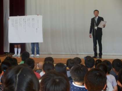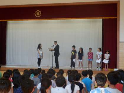 最後に、十中校区あいさつ運動の標語の表彰がありました。