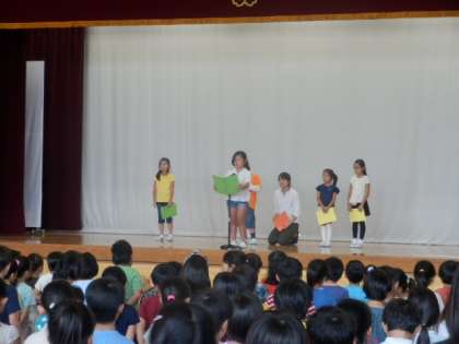 校長先生の話の後、2年生と3くみの児童による児童代表の言葉がありました。