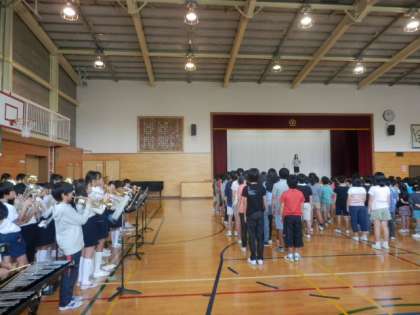 最後に、金管バンドの伴奏で校歌を歌いました。
