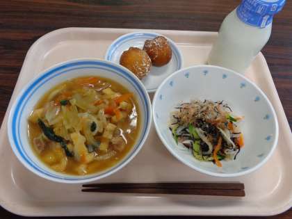 10月15日の給食 公開日 2014/10/15 更新日 2014/10/15 八雲ランチ 今日の給食:鶏南蛮うどん 大根とひじきのサラダ パンプキンドーナツ 牛乳 産地 にんじん:北海道 玉ねぎ:北海道 長ねぎ:青森県 小松菜:埼玉県 きゅうり:青森県 かぼちゃ:北海道 大根:北海道 鶏肉:鹿児島県 鶏卵:秋田県 いいね(0)