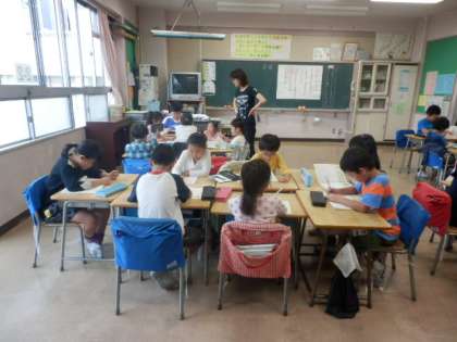 主語と述語の役割を知り、「お手紙」のお話の音読劇の準備をしました。