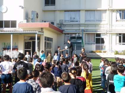 夏休み自由研究の優秀作品展の表彰がありました。作品は、区のホームページで見ることができます。