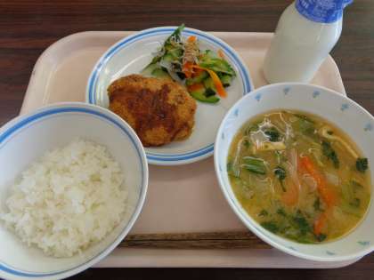 11月13日の給食 公開日 2014/11/14 更新日 2014/11/14 八雲ランチ 今日の給食:ごはん みそ汁 キャベツメンチ わかめサラダ 牛乳 産地 玉ねぎ:北海道 ごぼう:青森県 にんじん:北海道 白菜:長野県 長ねぎ:青森県 三つ葉:静岡県 きゅうり:埼玉県 キャベツ:千葉県 小松菜:埼玉県 大根:神奈川県 鶏卵:秋田県 豚肉:鹿児島県 いいね(0)