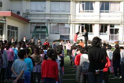 全校朝会 公開日 2014/12/08 更新日 2014/12/08 今日のできごと 平成26年度 歯・口の健康標語コンクールの表彰がありました。 保健委員会の5・6年生の作品が、優秀賞・最優秀賞をとりました。 いいね(0)