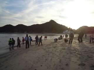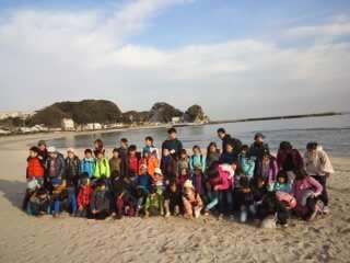 興津海岸で集合写真をパチリ!貝拾いもしました。