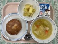 今日は世界の料理~インド~です。レンズ豆やカレー味で香ばしいタンドリーチキン、カレーのお供のアチャールなど、インドでよく食べられている食材や味付けを味わいました。アチャールは様々な野菜を酢やレモン果汁を加えたピクルス液で漬けたものです。今日は紫キャベツを使いました。さっとゆでて冷やし、ピクルス液を加えると色がだんだんピンク色に変わっていきました。児童が食べる時には、強烈なピンク色になっていて、皆さん驚いていました。食べ慣れず抵抗感があった児童もいたと思いますが、今日はインドの食文化に触れることができたのではないかと思います。