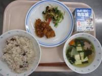 ≪献立≫●麦ごはん●肉じゃが●ニギスの竜田揚げ●野菜のごましょうゆ和え●牛乳≪使...