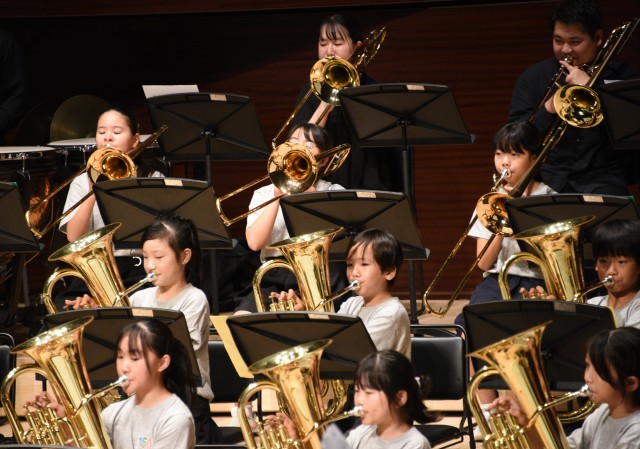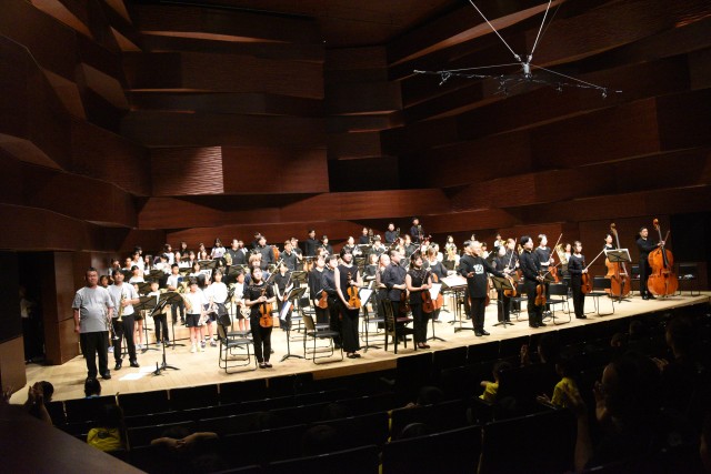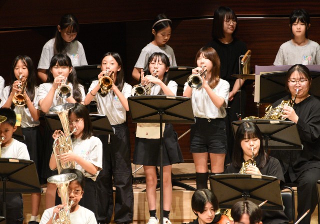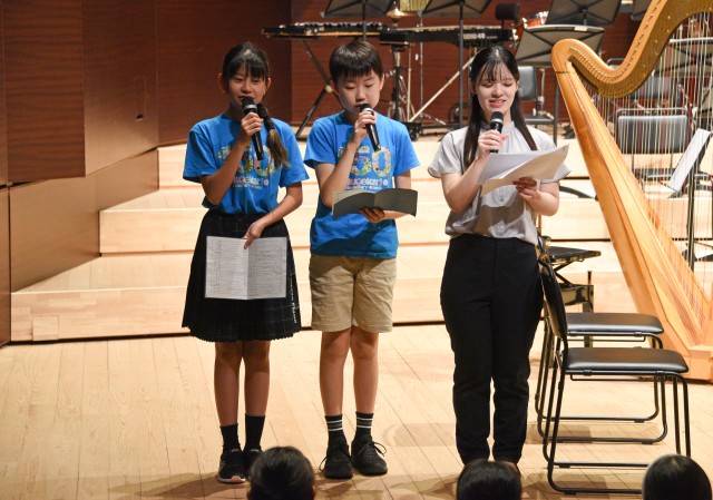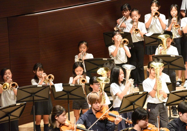 本校ミュージッククラブの子どもたちが、オーケストラと一緒に演奏しました。