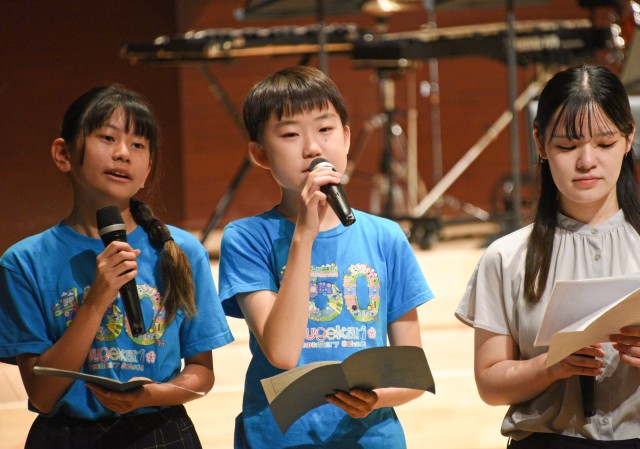 コンサート後半には、本校のミュージッククラブも舞台に上がり、4曲を一緒に演奏しました。