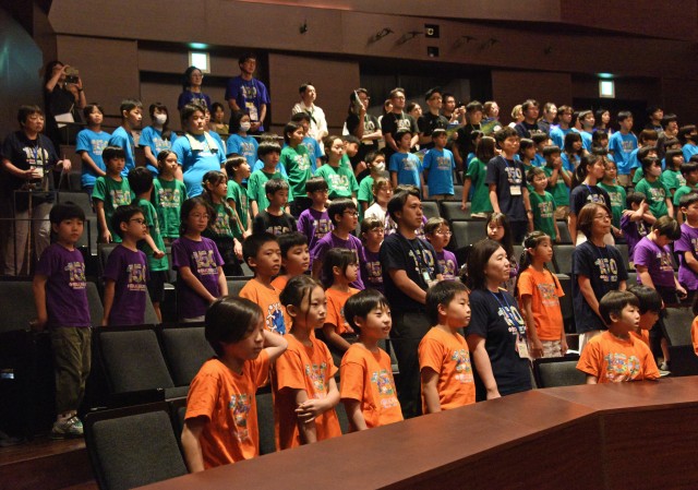 子どもたち全員がおそろいの記念Tシャツを着て、東京音楽大学TCMホールに集いました。