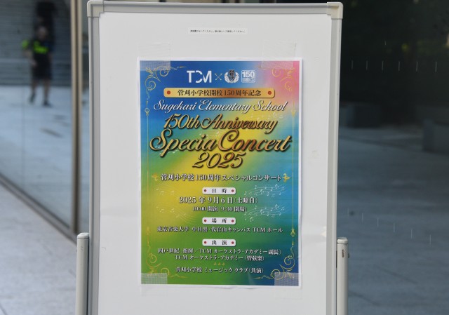 オーケストラの演奏で、全校児童が校歌と「すげかりフォーエバー」を斉唱しました。
