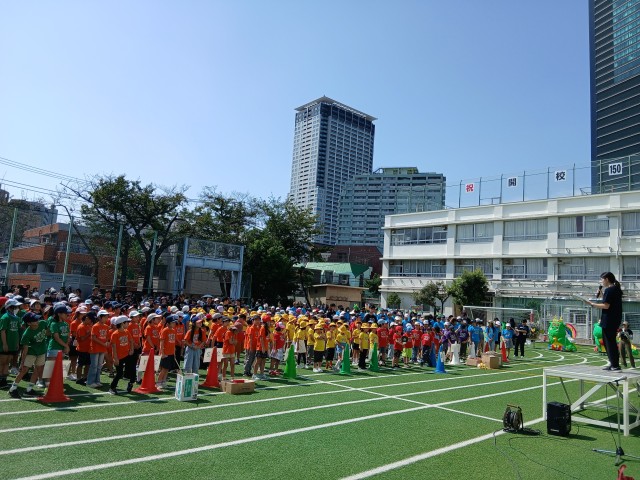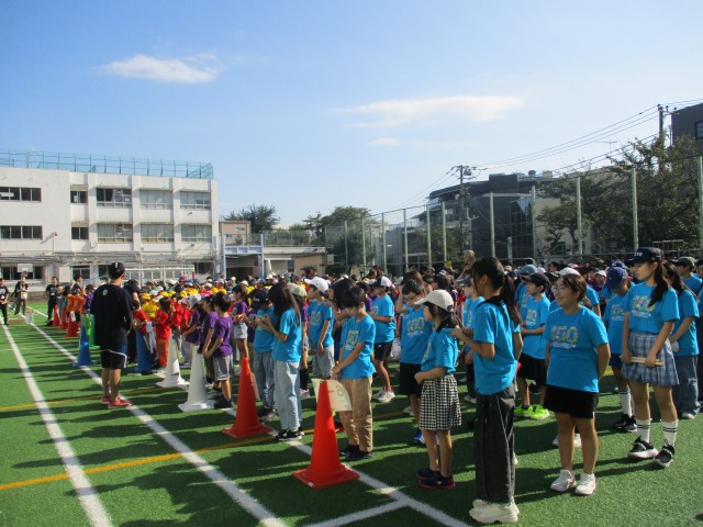 全員で校庭に整然と並ぶと、それぞれの学年のTシャツが目に鮮やかでした。