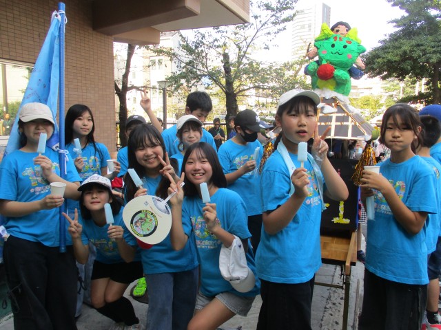 しんがりは5年生 休憩場所ではお茶やアイスが!