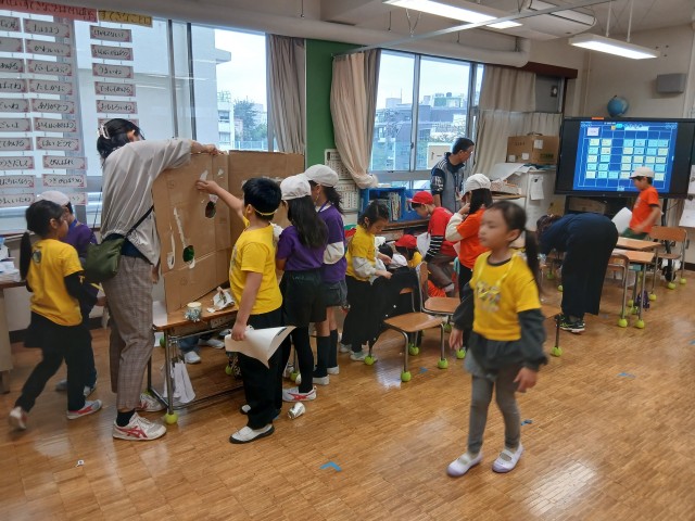 お客さんとして、兄弟学年で楽しく回りました。どのお店も盛況で、順番待ちの人気店も。