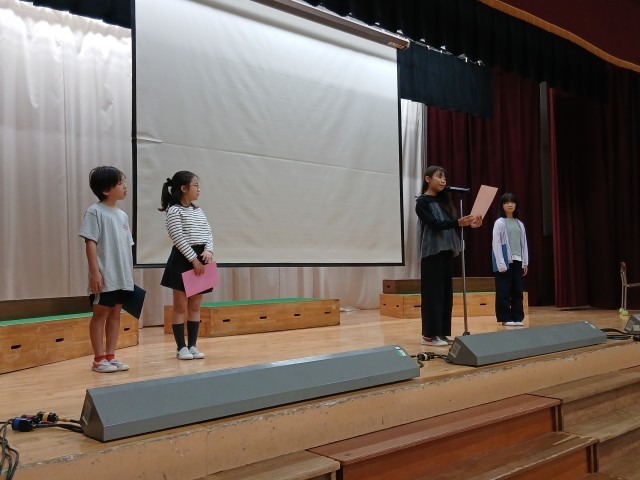 校長の話の後、4年生と5年生の代表児童の話がありました。