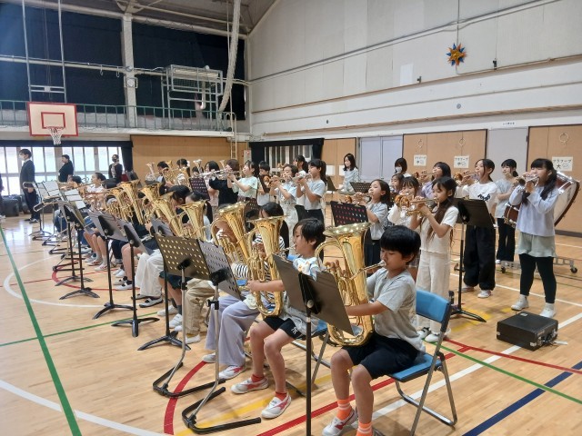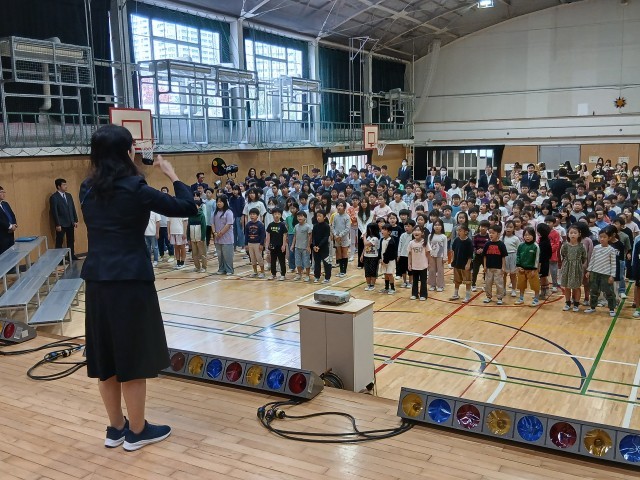 前期終業式と同様に、ミュージッククラブの伴奏で、全校児童が校歌を斉唱しました。