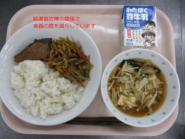 10月17日 麦ごはん とうふとわかめのみそ汁 ぶりのしょうが煮 じゃが芋の金平 牛乳