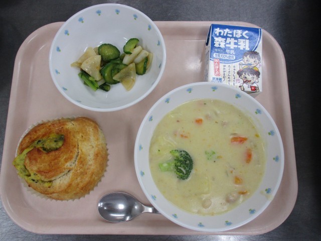 10月24日 手づくりさつまいもパン クリームシチュー かぶのサラダ 牛乳
