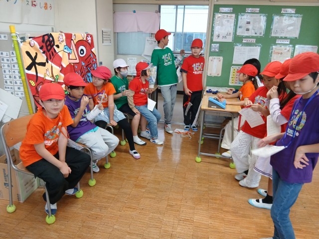 150周年をお祝いして何をしようか、子どもたちと考えたところ、たてわり班での子ども祭りの形がよいということになりました。