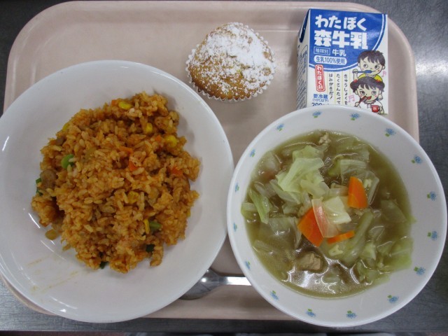 10月31日 チキンライス ABC野菜スープ パンプキンケーキ 牛乳