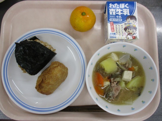 11月5日 おかかおにぎり いなりずし 豚汁 みかん 牛乳 公開日 2025/11/06 更新日 2025/11/06 給食 ≪献立≫●おかかおにぎり●いなりずし●豚汁●みかん●牛乳≪使用食材・産地≫にんじん(北海道)、ごぼう(青森)、大根(千葉)、じゃが芋(北海道)、長ねぎ(秋田)、みかん(熊本)、豚肉(埼玉) いいね(0)
