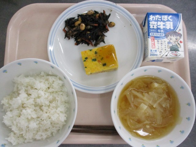 12月12日 麦ごはん 大根のみそ汁 ぎせいどうふ ひじきと大豆の炒め煮 牛乳 公開日 2025/12/12 更新日 2025/12/12 給食 ≪献立≫●麦ごはん●大根のみそ汁●ぎせいどうふ●ひじきと大豆の炒め煮●牛乳≪使用食材・産地≫玉ねぎ(北海道)、にんじん(千葉)、小ねぎ(福岡)、いんげん(沖縄)、鶏肉(宮崎)、大根(東京)、切干大根(宮崎)、たまご(秋田) いいね(0)