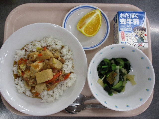 12月18日 肉豆腐丼 大根と小松菜のサラダ スイートスプリング 牛乳