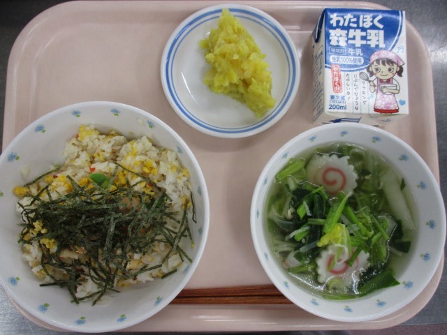 1月8日 ちらし寿司 七草汁 フルーツきんとん 牛乳