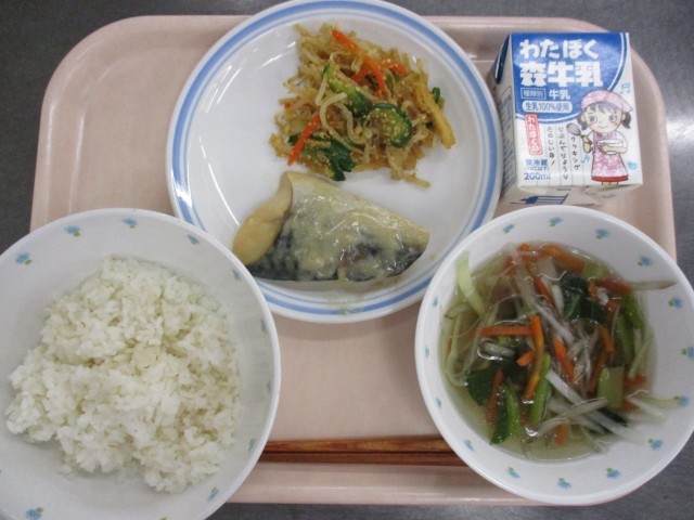 2月6日 麦ごはん 沢煮椀 さばの味噌煮 糸寒天のごま酢和え 牛乳