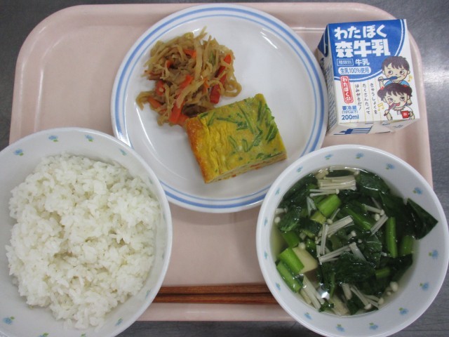 2月25日 麦ごはん すまし汁 千草焼き 切干大根の炒め煮 牛乳