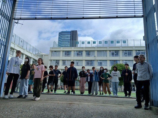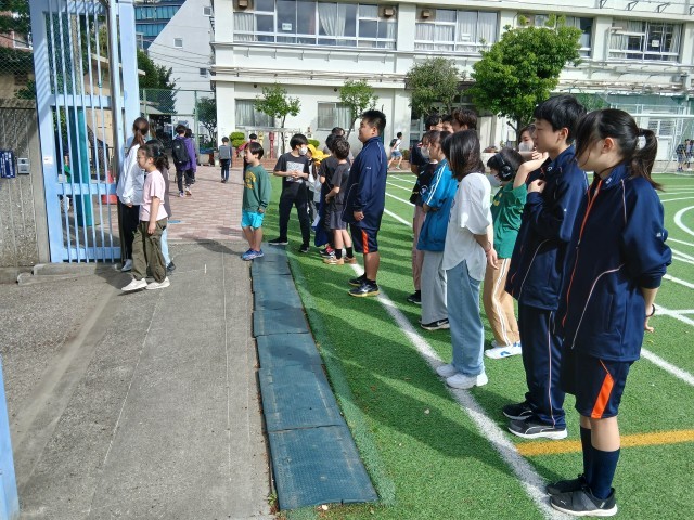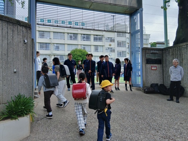 第一中学校の1年生が来てくれて、本校児童と一緒に、元気に「おはようございます!」の声をかけてくれました。