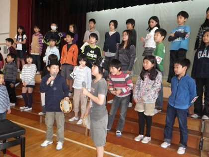 「1年生を迎える会」の5年生の出し物は、○×クイズ。「1年生に菅刈小のことを知ってほしい」「1年生に楽しんでほしい」そんな気持ちで、みんなで考えた出し物は大いに盛り上がりました。