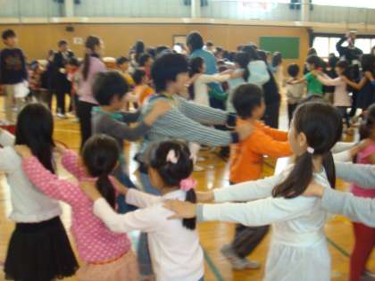最後は、全校で「マルマルモリモリ」と「校歌」を歌いました。