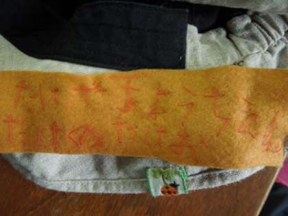 帽子に「たけのたけお」と刺繍してきた子もいました!