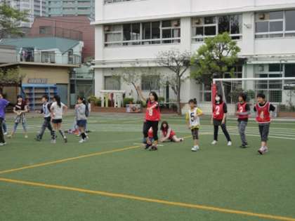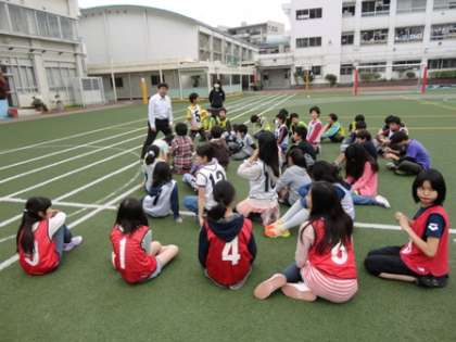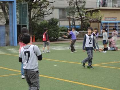 6年生の今日の5時間目は、校長先生の特別授業で、校庭で三色どろけいをやりました!