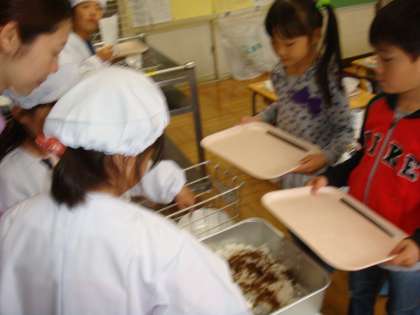 きゅうしょく当番て、たのしいな! 公開日 2012/04/18 更新日 2012/04/18 1年 1年生が初めて、給食当番に初めて挑戦しました。 白衣に着替えて、お盆やおかずを配ります。 とってもじょうずにできました。、 いいね(0)