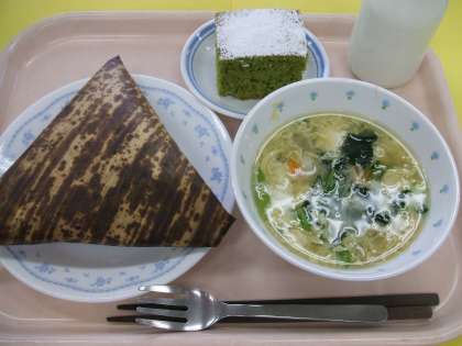 献立 :中華ちまき かきたま汁 抹茶ケーキ 牛乳