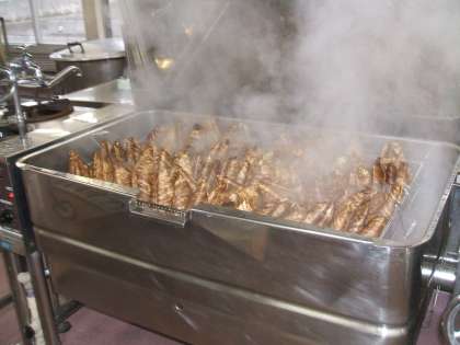 今日は、端午の節句のメニューです。給食室で全校分のちまきを