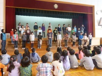あたたかさいっぱいの1年生を迎える会(2) 公開日 2012/04/20 更新日 2012/04/20 今日のできごと 2年生の立派な挨拶に続きて、5年生企画のの楽しいクイズ、4年生企画のじゃんけん列車で会はどんどん盛り上がります!! いいね(0)