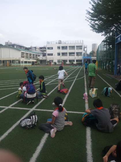 全行程を無事に終え、一路菅刈小学校に向かっています。おもいっきり遊んだせいか少々疲れ気味です。ついに菅刈小学校に到着です。