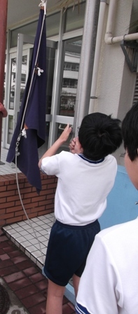 あすなろ学級の6年生も、毎月の最終週に「校旗」を揚げることになりました。