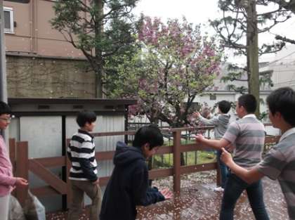あすなろ学級、こんなこと 公開日 2012/04/26 更新日 2012/04/26 あすなろ 今日はあいにくの天気でしたが、ふと教室から外を見ると… 子どもたちも「わぁぁぁ」と見惚れてしまうような花吹雪!! 学級園の隅にひそかに咲いている八重桜からの花吹雪でした。 あまりの美しさに、ついつい引き寄せられて、手を伸ばす子どもたちでした。 いいね(0)