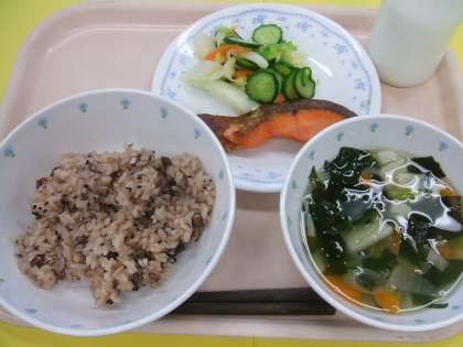 献立 :赤飯 すまし汁 サケの西京焼き 即席漬け 牛乳