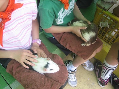 こども動物園では、モルモットをだっこして、アヒルやヤギにえさをやりました。ソフトクリームを食べた後は、地図を片手に吊り橋を探しました。ちょっとゆれましたが、眺めは最高でした。楽しいお弁当の後は、いろんな遊具で遊びました。