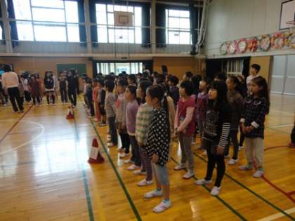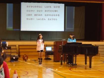 始めに全員で校歌を歌いました。一年生は覚えたばかりでしたが上級生に負けない元気な声を聴かせてくれました。