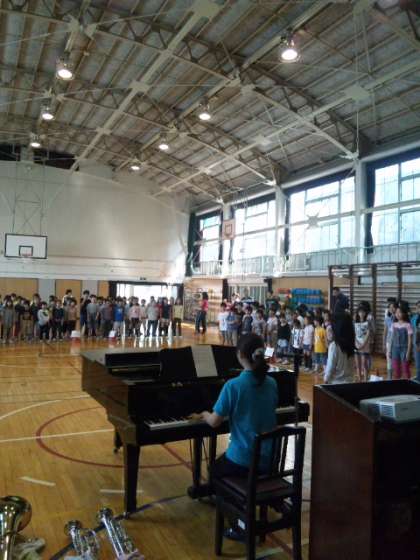 今日の音楽朝会は、みんなで運動会の歌の練習をしました!体育館に元気な声が響きわたり、いよいよ運動会モードに突入です。