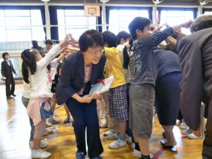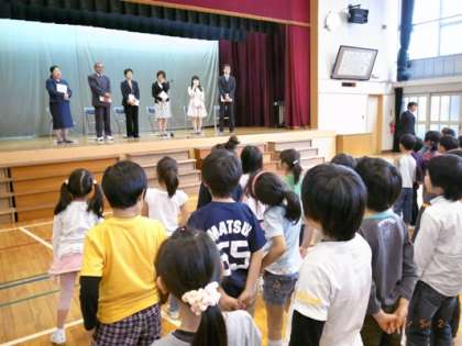 今日、離任式がありました。2年生は渋谷先生にお手紙を書きました。