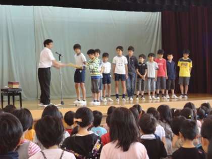 菅刈サッカークラブが表彰! 公開日 2012/05/08 更新日 2012/05/07 専科 6年生の元気な挨拶で1週間がスタートしました! ゴールデンウィークも明け、いよいよ運動会に向けて練習が始まります!! また、今日は菅刈サッカークラブの表彰がありました!! 目標に向かって頑張っている子どもたちは輝いています! いいね(0)