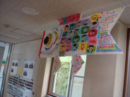 こいのぼり! 公開日 2012/05/07 更新日 2012/05/07 1年 1年生の教室の前の廊下には、「こいのばり」が!! よく見ると、うろこの一つ一つに、1年生のお顔がかいてあります。 こいのぼりにのって、しゅっぱあつ!! いいね(0)